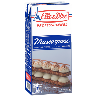Com base nos seus conhecimentos sobre lacticínios e com uma proximidade com os chefes de cozinha, a Elle & Vire Professionnel desenvolveu o Mascarpone UHT com todas as qualidades e frescura deste ingrediente. O Mascarpone é muito fácil de trabalhar e em 2016 foi galardoado nos prémios EUROPAIN INTERSUC como “Inovação Criativa do Ano”.